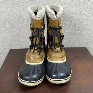Sorel Yoot Pac Boots Beige Black Lace Up Waterproof Winter Snow Duck Sz 7