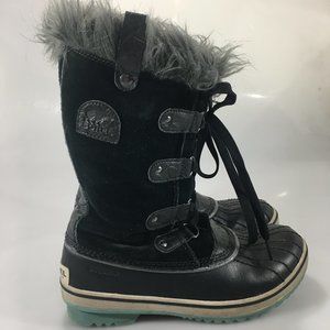 Sorel Youth 5 Tofino Black Suede Insulated Rubber Winter Duck Boots Waterproof