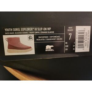 Sorel Youth Explorer III Slip-On Waterproof Boots Size 7 Mauve