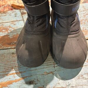 Sorel Youth Flurry Black Blue Pull On Snow Boot Kids Size 4