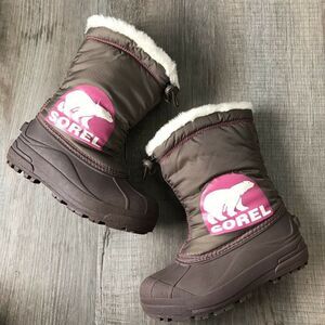 Sorel Youth Kids Snow Commander Mudd Brown & Very Pink Insulated Winter Snow Boots 3. Condition is "Pre-owned".
