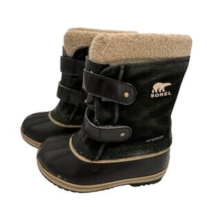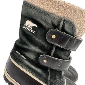 Sorel Youth Pac Strap Black Suede Waterproof Snow Boots Size 11