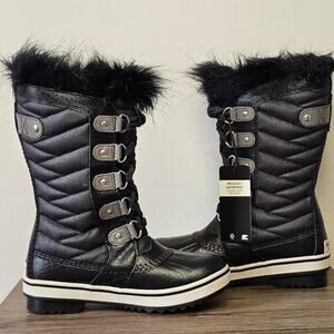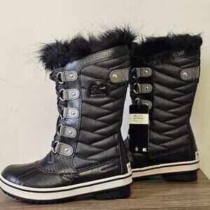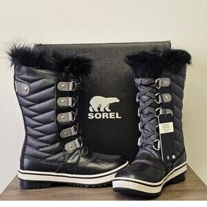 These Sorel Youth Tofino II Tall Boots are perfect for keeping your little one's feet warm and dry in any weather. They are waterproof and feature a stylish black and quarry color combination. Brand new with tags!