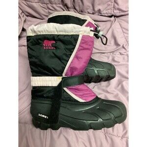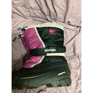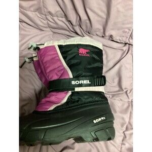 The Sorel Youth Winter Boots in size 6 are stylish and functional for cold winter days. The pink color and Velcro strap add a cute touch to these snow boots, while the sturdy construction and waterproof design ensure warmth and comfort. Perfect for any child, these boots are a practical and fashionable choice for the winter season.