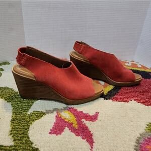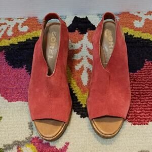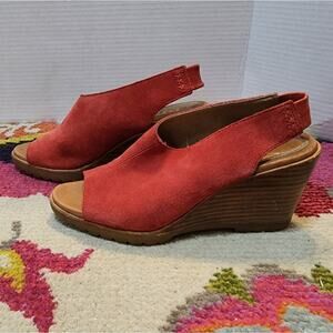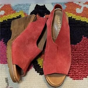 Sorel after hours slingback red suede leather Wedge Sandalas size 7