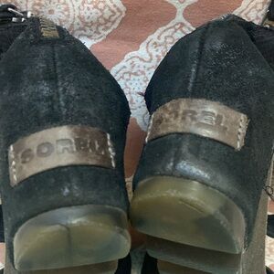 Sorel black zip up leather wedges heel size 7.5