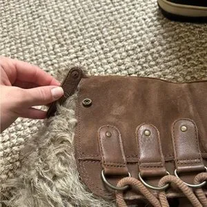 Lightly worn sorel boots Size 9.5 See photo for the broken button on the inside of the boots. Otherwise great shape!