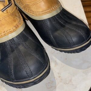Sorel boots size 7 rubber waterproof quilted felt tan leather