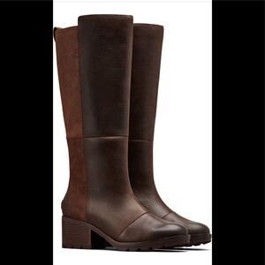 💗Sorel cate tall waterproof leather boot cushioned foodbed size 5 , new