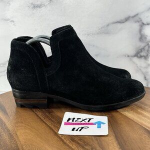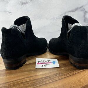 Sorel lolla cut out black suede ankle bootie heeled boots women's size 9.5