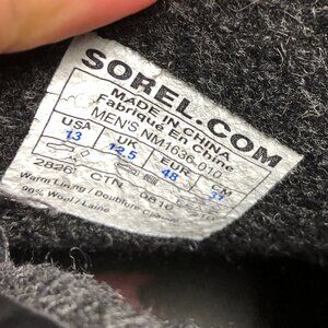 Sorel men black lace up boots, upper synthetic, wool lining, 13