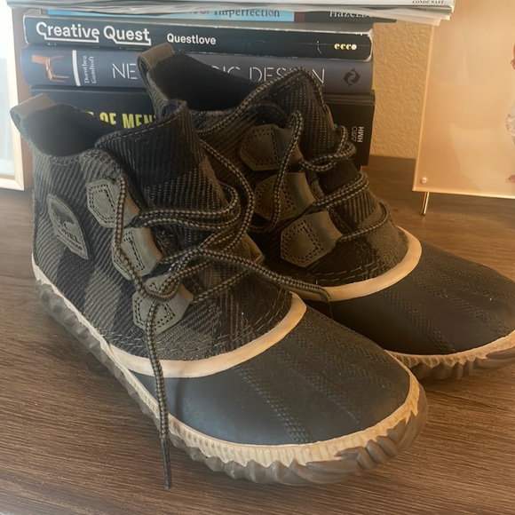 These are basically new work maybe twice! Hunter green and black plaid mini boot