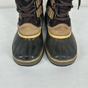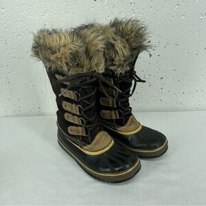 Sorel size 6 Joan of Arctic Suede Tall Faux Fur Lined Winter Boots. In good preowned condition some normal some marks on leather light wear to lining normal wear to faux fur liners and some wear on the sole heels.