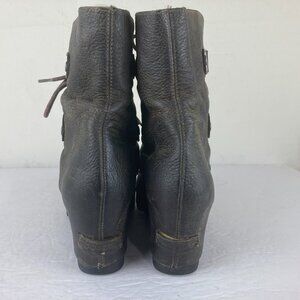 Sorel sz 9.5 Joan of Arctic Hidden Wedge Mid Boots Leather Lace Up Brown