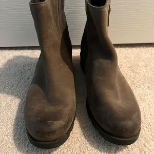 Hardly worn. These Sorel waterproof booties will work great for the icy snow, rain or just with a pair of jeans. The color is a two tone green and grey with a wood heel. Size 7