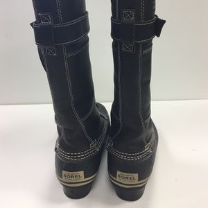 Excellent Condition! Waterproof, fleece lining, front zipper. 13" tall. Brown shaft, black foot.
