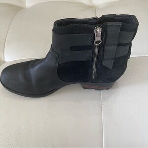 Sorel women’s Lolla Black Ankle Boots Nubuck leather and suede size 8 side zip