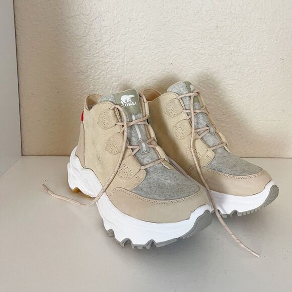 Sorel Boot Women's Kinetic Breakthru Caribou Waterproof Nova Sand and Grey 9.5