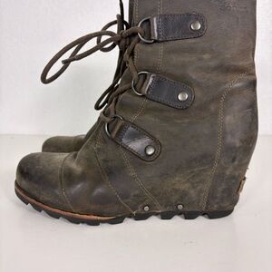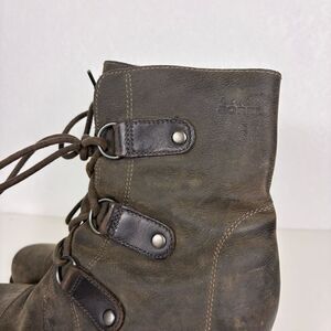 Good condition Sorel Brown Leather Lace Up Mid Calf Booties Women's Size 8.5