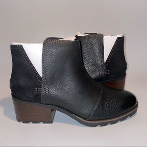 Sorel Cate Cut Out Ankle Boots Block Heel Black Leather