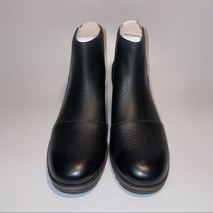 Sorel Cate Cut Out Ankle Boots Block Heel Black Leather