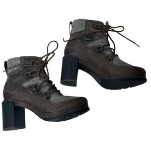 Sorel Gray and Brown Blake Lace Up Heeled Ankle Booties. Size 7.5.