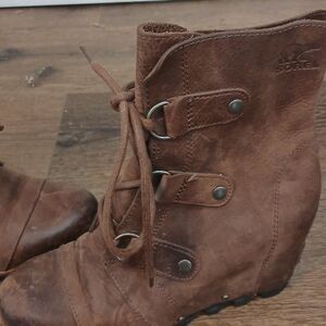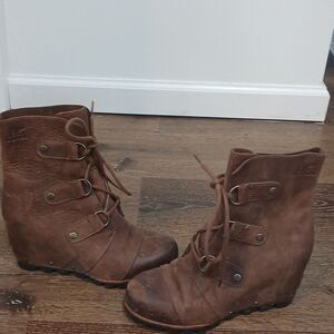 Sorel Joan Of Artic Brown Lace-Up Wedge Boots Size 7