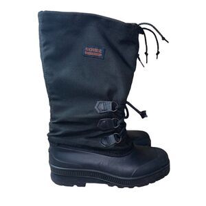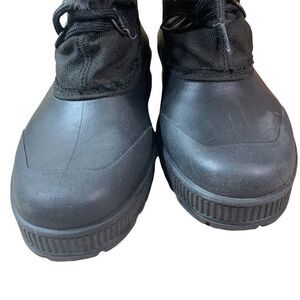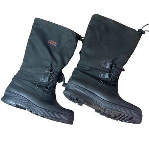 Sorel Kaufman Canada Snowcap Tall insulated Women’s boots. Good condition some wear/rust on the rings by shoelaces, the shoe laces also show signs on wear and the insulation on the inside has wear and piling. There is also some scuff/scratch marks. Black. Size 8. Tags look vintage