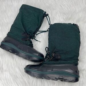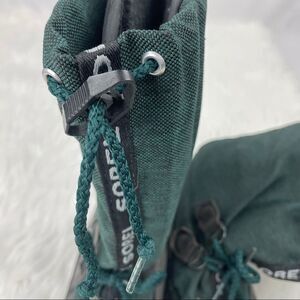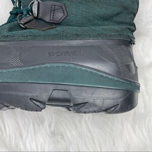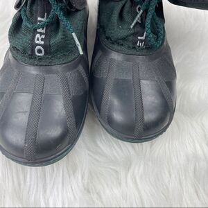 Sorel Kaufman weather resistant PU-backed synthetic upper, built-in gaiter, and barrel lock drawcord. Size 6. The Omni-Heat reflective lining for warmth, fleece liner boot regulates temperature and moisture build up. equipped with a molded waterproof thermal rubber shell, complete with multi-directional lugs for enhanced traction and maximum stability. Built in gaiter with barrel lock drawcord. Removable fleece inner boot. Injection molded waterproof shell. No major wear-see pictures.