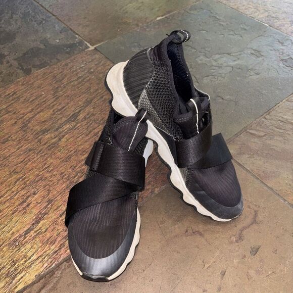 Sorel Kinetic Sneak Shoes Women 8 Black Slip On Strap Low Top Sneakers Logo
