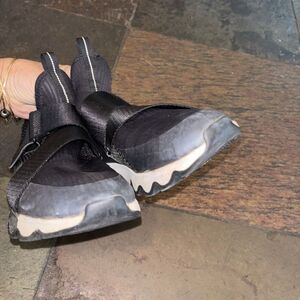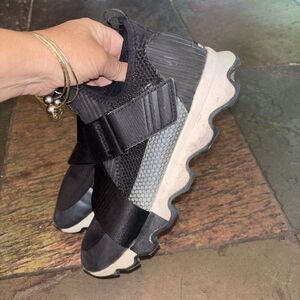 Sorrel kinetic women low top sneakers black fabric mesh size US 8 hook loop strap closure logo machine wash rubber sole