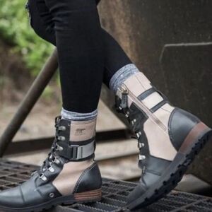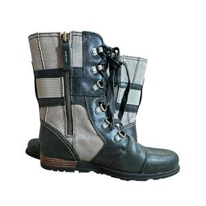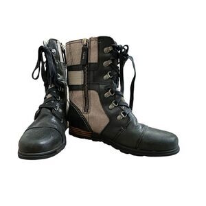 Sorel Major Carly Leather and Canvas Lace Up Zipper Boots | Size 8