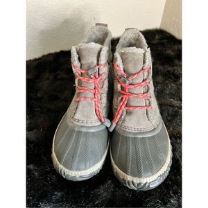 Sorel Out N About Gray faux Fur Trim Waterproof Duck Boots Sz 7