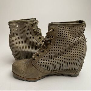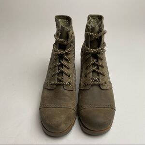 Sorel PDX Wedge Lace Up Peatmoss Green Leather Lexie Wedge boots 8