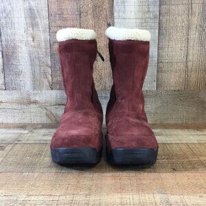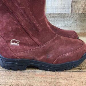Sorel Winter Boots Womens 8 Red Suede Leather Water Fall Waterproof Insulated