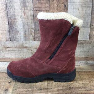 Sorel Winter Boots Womens 8 Red Suede Leather Waterfall Waterproof Insulated. Zip-up winter boots featuring a mid-calf cut and snow-resistant acrylic fur cuffs. Sorel Suede Mid-Calf Snow Boots. Round-Toes with Fur Trim. Block Heels with Platform.Exposed Zip Closure at Sides.