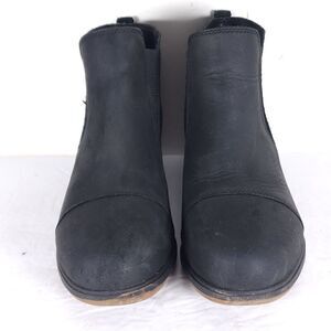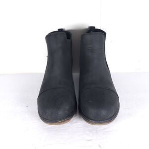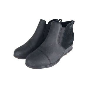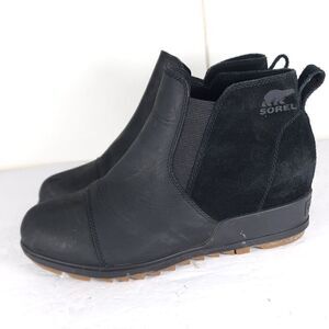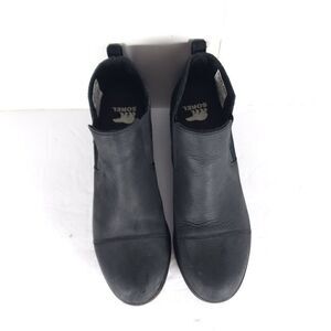 Sorel Women's Evi US8 Black Leather Waterproof Pull on Wedge Chelsea Ankle Booties Boots .