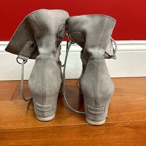 Sorel Womens Joan Of Arctic Wedge II Ankle Boot Gray Suede Round Toe size 9 in excellent condition.