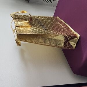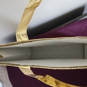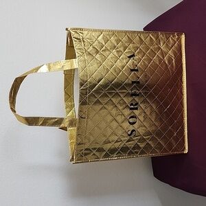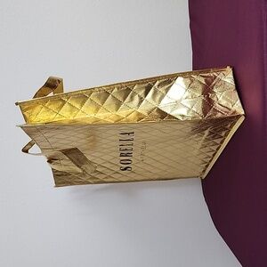 This golden tote bag from Sorella Apothecary is the perfect addition to your collection. Made of sturdy nylon material and with a normal size, it is ideal for women who love to carry their essentials in a fashionable way. Measuring 14 3/4 inches in length and 15 5/8 inches in height, it provides ample space for your belongings.
