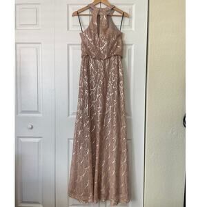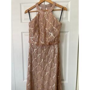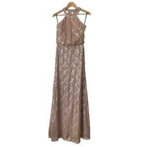 Sorella Vita Gold Sequined Scallop Pattern Halter Neck Gown Dress • Size 10