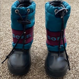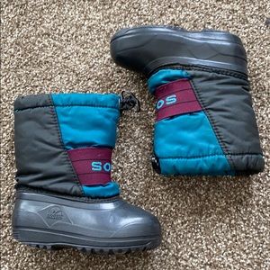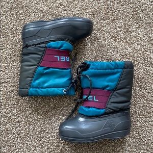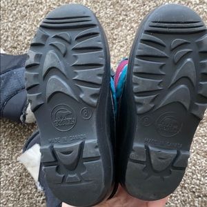 Great quality, Made in Canada Sorel Boots toddler size 8 (could be boy or girl) colors are black, teal, wine/purple! They are in really good shape (see pics for the few signs of wear) with warm fleecy liners! *They go great with the us polo jacket listed separately!