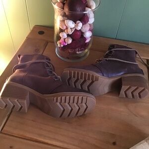 NWOB Dark brown meets burgundy for a gorgeous union! Simple but sleek 6” ankle boots that deliver comfort as well as style. Two inch heel, Rubber outer sole, round toe and comfy, comfy, comfy! These are size 8. Please refer to pictures for measurements, they do fit true to size. Super cute boots for rain or shine, work, home, or evening out. Very versatile boots, beautiful color. New!