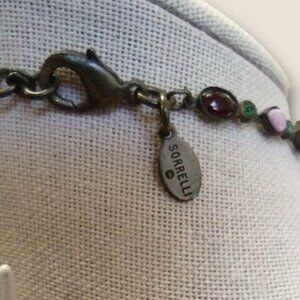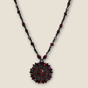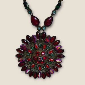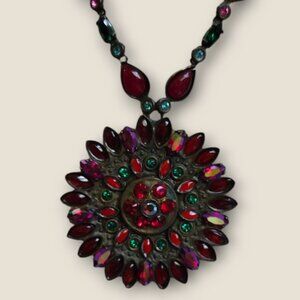 Sorrelli Crystal Sunburst Pendant Necklace with Red Green and pink crystal s that adorn the entire necklace. Stunning necklace!