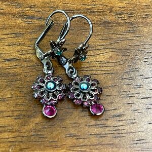 Corelli drop earrings dark gray metal-turquoise/hot pink stones