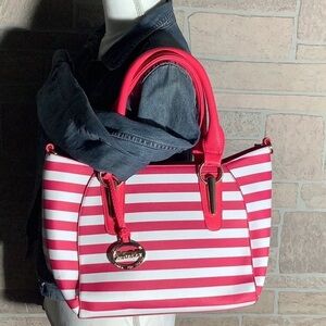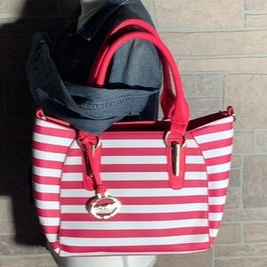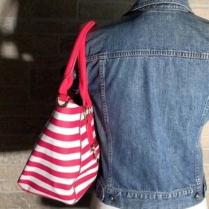 Sorrentino NEW - pink white striped roomy bag - carry on or shoulder bag