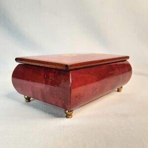 Sorrento Isle of Capri Footed Music Jewelry Box Doesn't Play Intricate Wood Inlay