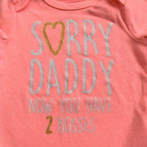 “Sorry Daddy, Now You Have 2 Bosses” pink onesie. Size 6 months.