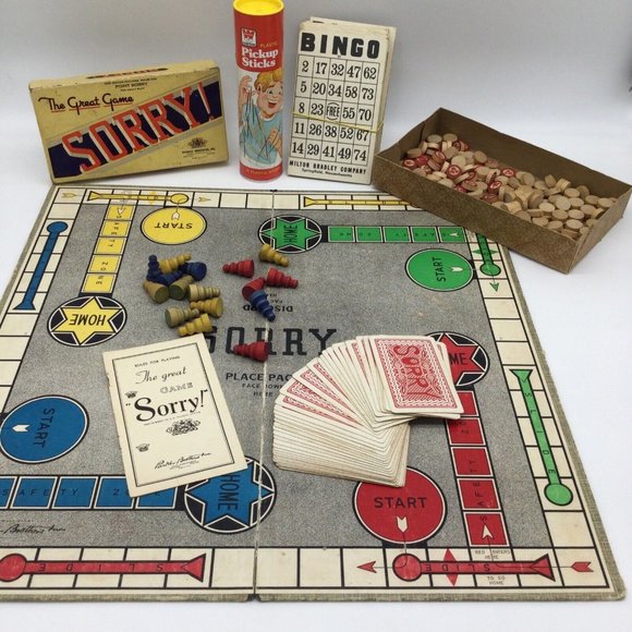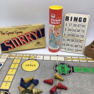 Sorry! Game Vintage The Great Game lot parker Brothers Pick Up Sticks Bingo