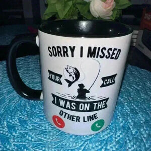 Sorry I Missed Your Call Coffee Fishing Mug in Black and White