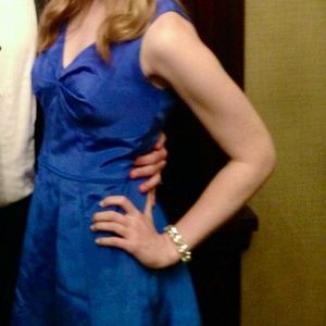 Beautiful bright blue with purple undertones Soshanna dress with v-neck. Only worn once but slight discoloration under the arms from my deodorant. Priced to sell!